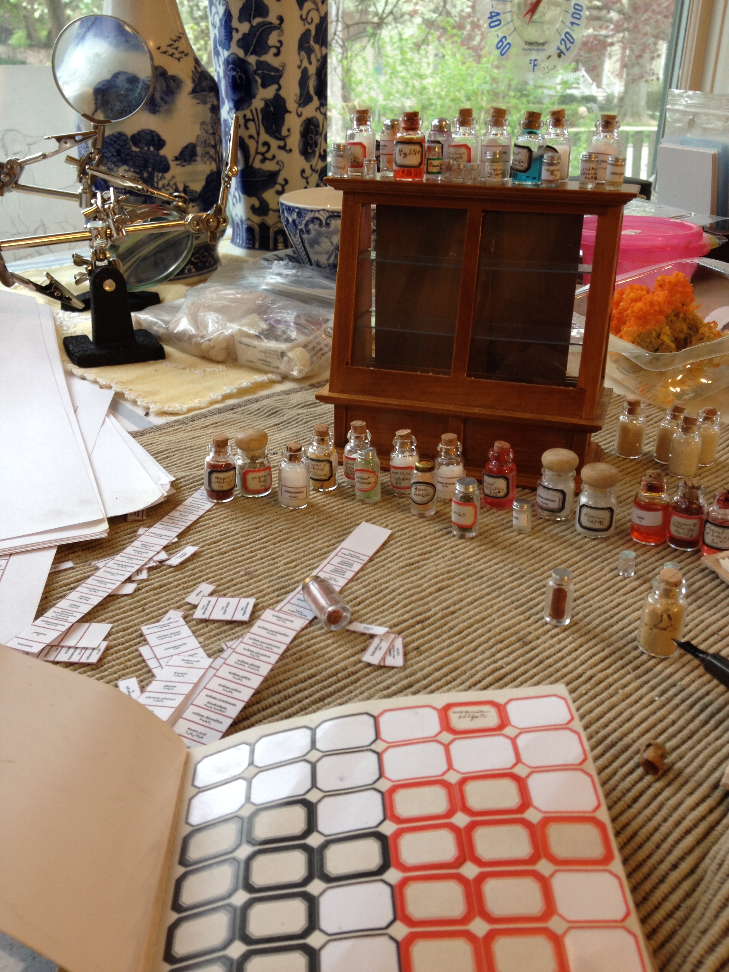 Chladni found that by drawing a violin bow along a metal or glass plate covered with sand, that various regular patterns would emerge. There is a fine replica of Chladni’s device at the Smithsonian Museum. Ours is 1:12 scale, and uses a teeny tiny violin bow.
