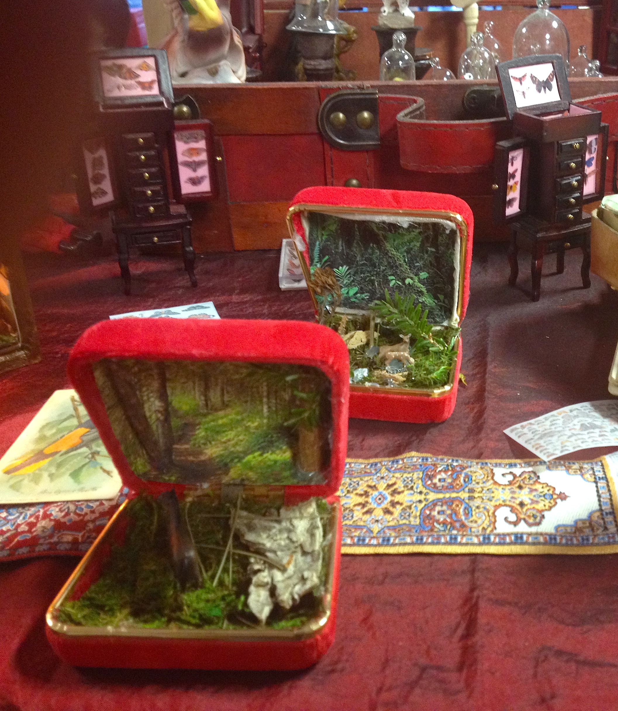 Then a group of talented diorama artists made miniature scenes in velvet ring boxes, using HO scale animals and assorted bits of nature modified for tiny effects.